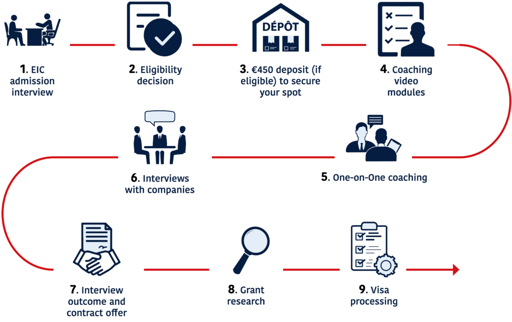 Below, you can follow all the stages of the EIC programme in chronological order.Fore more information, visit the page describing our internships in Canada.