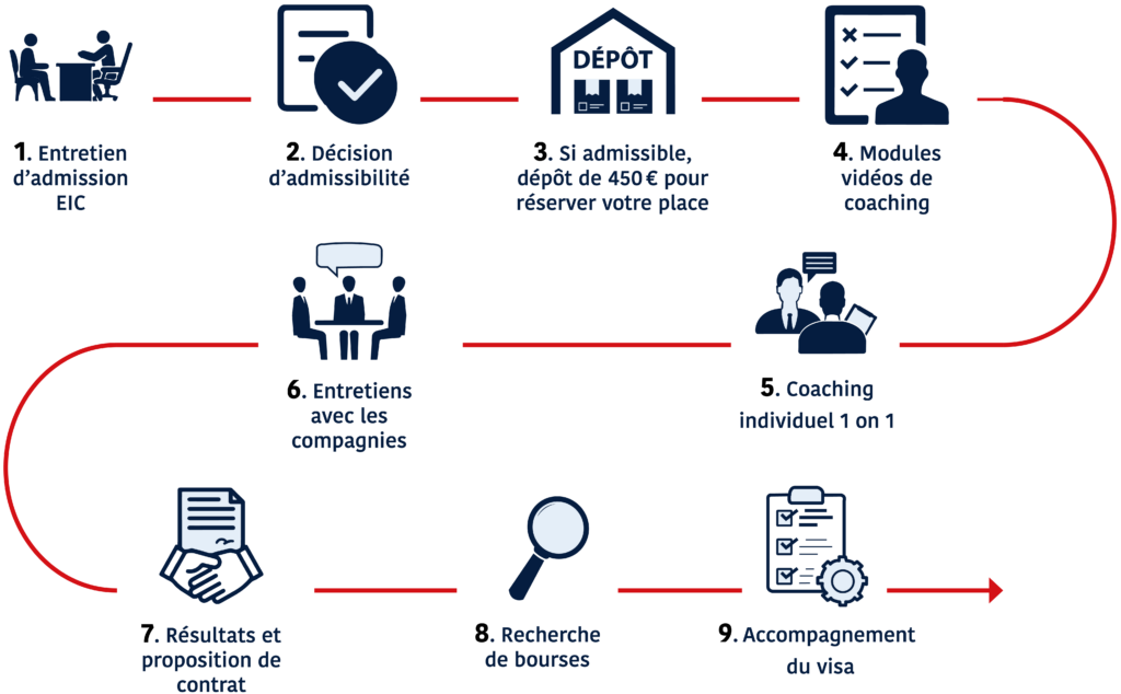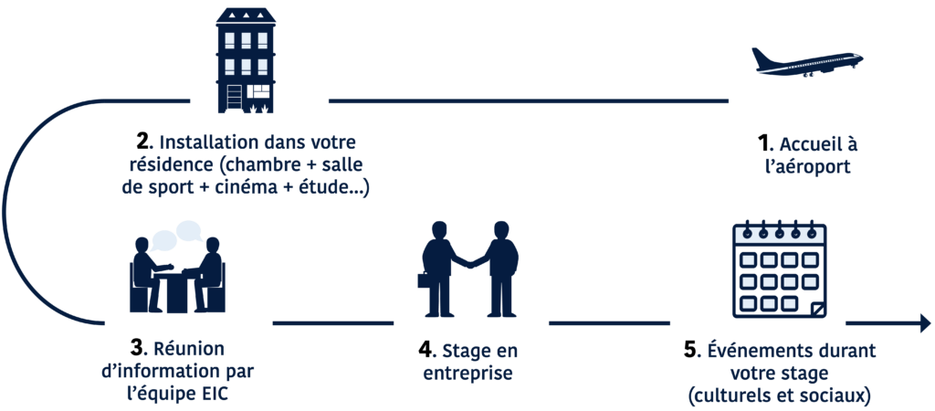 Le programme EIC suit des étapes précises, de la recherche de stage à l’obtention du visa, afin d’offrir une expérience claire et structurée.